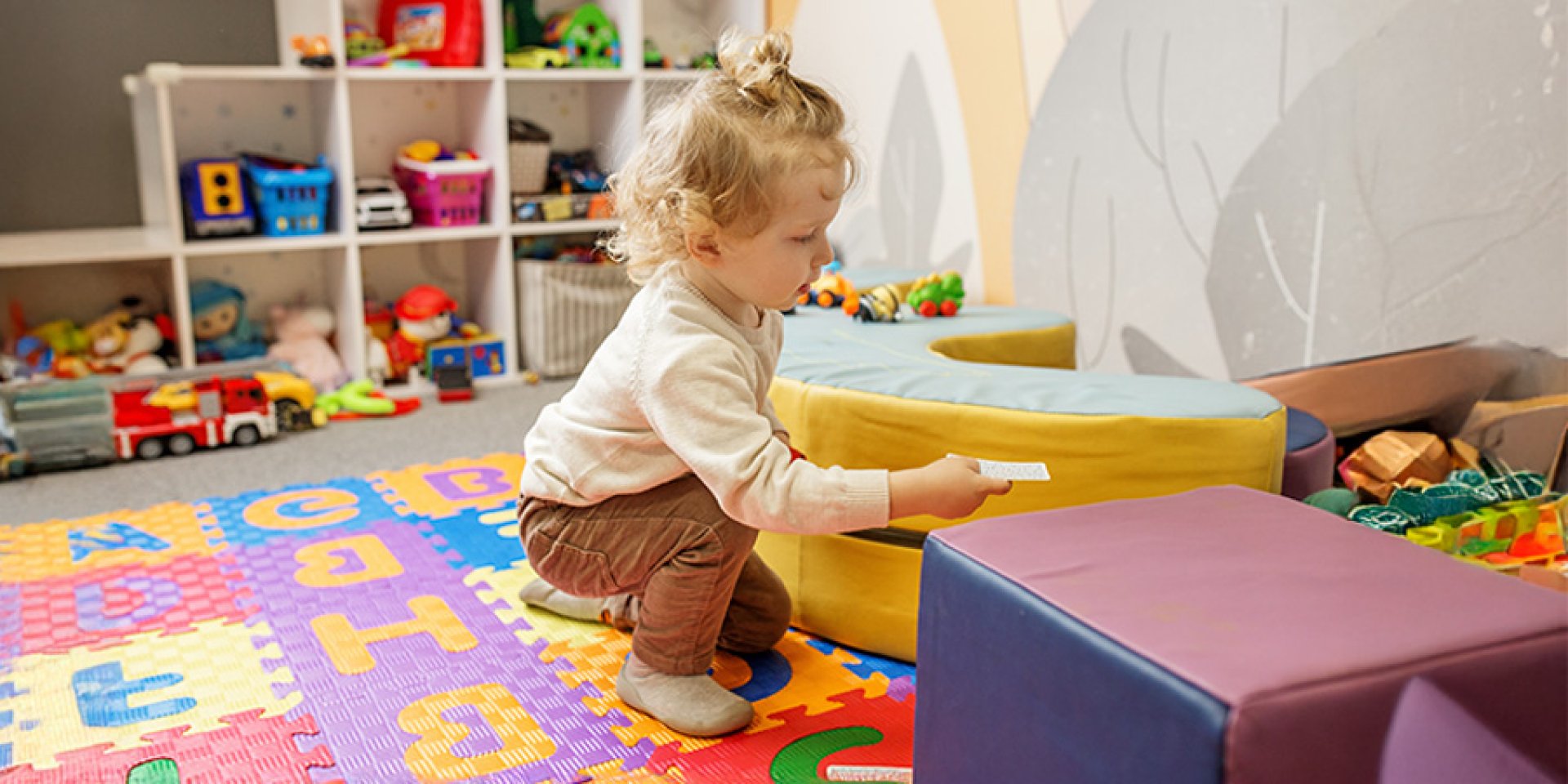 Rolos de papel kraft fixados na parede ou suportes para papel também oferecem superfícies amplas para criação. Cantinhos temáticos enriquecem as possibilidades de brincadeira. Uma tenda ou cabana cria espaço de leitura e imaginação. Tapetes com estampas de cidades, fazendas ou circuitos de carros viram cenários para brincadeiras. Prateleiras com plantas de verdade ou objetos naturais como conchas e pedras conectam a criança com elementos da natureza.